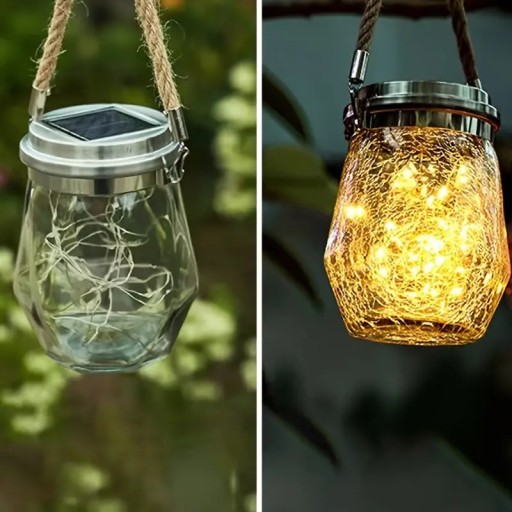LAMPA SOLARNA SŁOIK ZAWIESZKA OGRODOWA BALKONOWA WISZĄCA LATARENKA KAGANEK