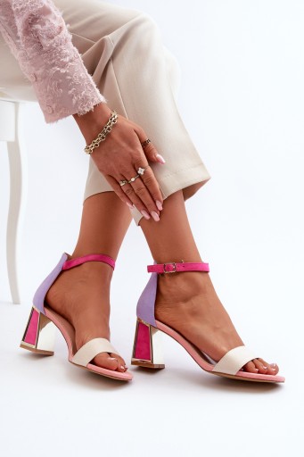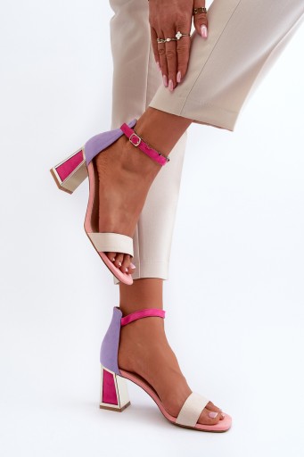 Sandały Zamszowe Na Słupku Różowe Pholia - rozmiar 39