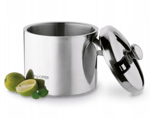 Wiaderko do lodu ze szczypcami Konighoffer Lugo 3 l wykonane jest ze stali nierdzewnej. Jego wielkość pomieści np. klasyczną butelkę alkoholu. Świetnie sprawdzi się na przyjęciu. Możesz z jego pomocą udostępnić gościom kostki lodu do drinków. Dzięki metalowemu uchwytowi bezpiecznie przeniesiesz wiaderko razem z lodem. Model jest duży, trwały oraz dobrze zniesie użytkowanie i wilgoć. Sprawdzi się m.in. jako element romantycznego wieczoru przy winie lub szampanie. Ma też konstrukcję dającą próżniową izolację termiczną zawartości. Szczypce dołączone do kompletu ułatwiają nakładanie kostek. Schowasz je w pokrywce.