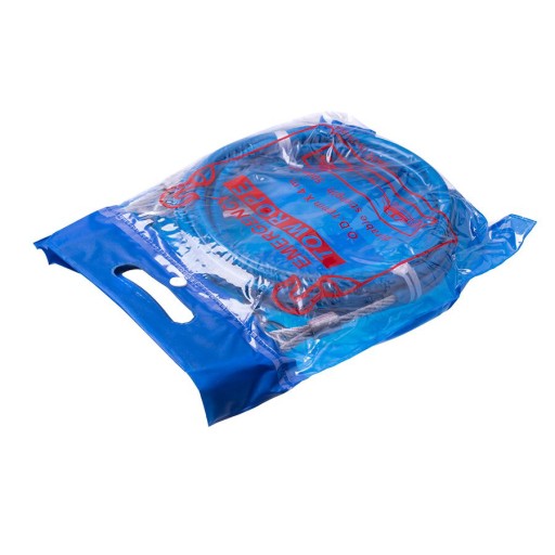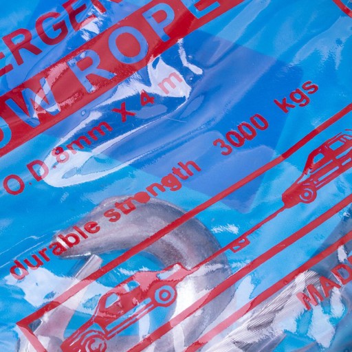 Linka stalowa pleciona do holowania – powlekana, zakończona dwoma hakami.