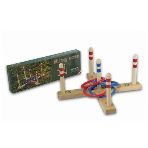 Gra zręcznościowa Ringo włoskiej rodzinnej firmy LUCIO LONDERO z pierścieniami to świetna gra dla dzieci i dorosłych. Rozwija umiejętności manualne i zręczność graczy Można w nią grać w domu, ogrodzie, na plaży, wszędzie tam gdzie liczy się dobra zabawa.