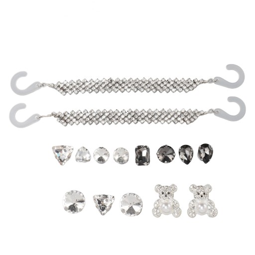 1. Elementy mody: Te błyszczące akcesoria do obuwia łączą w sobie elementy mody, w tym łańcuszki, cyrkonie i perłowy miś, które można mieszać i dopasowywać, aby ozdobić swoje buty i dodać elegancji i blasku swoim ulubionym sandałom na chodakach.