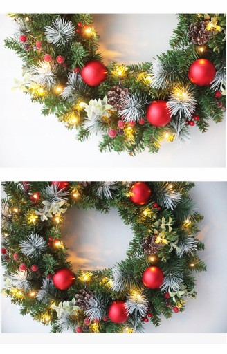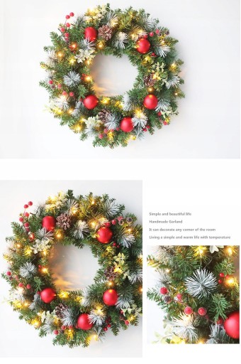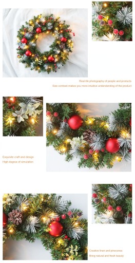 Nazwa: 30 CM boże narodzenie rattanowe koło pcv czerwone owoce PE liść dekoracji girlanda naturalne ozdoby z szyszek sosny