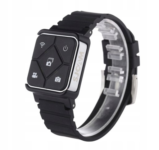 Gustowny pilot SJ SMART w formie zegarka na rękę. Dzięki takiemu rozwiązaniu możemy bez problemu przełączać się pomiędzy trybami naszej kamerki, włączać/wyłączać WiFi, robić zdjęcia oraz wyłączyć samą kamerkę.