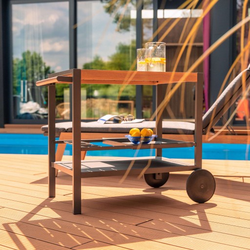 - nowoczesny barek na kółkach ułatwia podawanie napojów i posiłków - sprawdzi się w ogrodzie, na tarasie i w domu