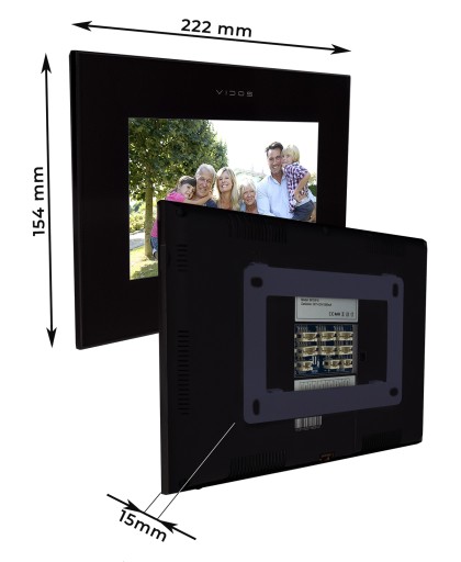 Zawarta w zestawie instrukcja obsługi jak i całe oprogramowanie monitora Vidos jest w języku polskim, co znacznie, że bez problemu poradzisz sobie z montażem i codziennym użytkowaniem. Kolorowy wyświetlacz 7" TFT-LCD 1024 i duże ikonki sprawiają, ze wszystko jest bardzo intuicyjne w obsłudze. Jeśli chcesz, możesz oczywiście skonfigurować wszystkie parametry pod Siebie (kontrast, jasność, nasycenie, głośność). Monitor ma także możliwość zmiany trybu dzwonka (16 melodii). Dzwonki mogą być zaprogramowane indywidualnie dla każdego panelu zewnętrznego.
