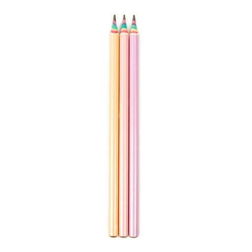 Ołówek o twardości rysika HB w błyszczącym, pastelowym kolorze. Ołówek kryje w swym wnętrzu sekret. Ostrząc go odkrywa się jego tęczowy środek! Idealnie nadaja się zarówno do rysowania, szkicowania, jak i pisania czy liczenia, a jego wyjątkowy design przyozdobi pojemnik na przybory lub piórnik.