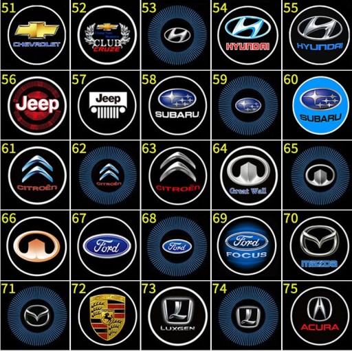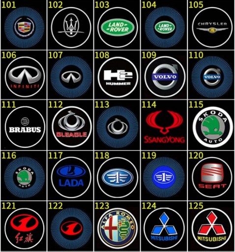 Cena dotyczy kompletu dwóch projektorów LED z wybranymi logotypami, magnetycznymi czujnikami otwarcia/zamknięcia drzwi oraz taśmą montażową. Zestaw nie zawiera baterii AAA