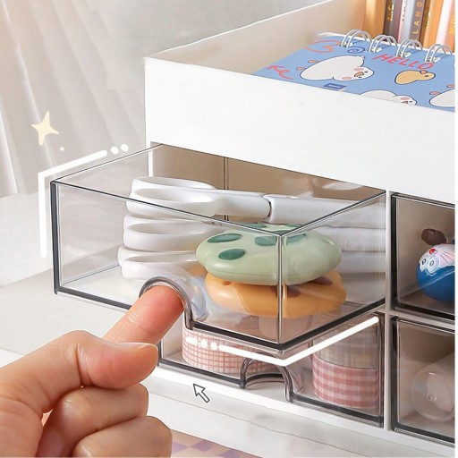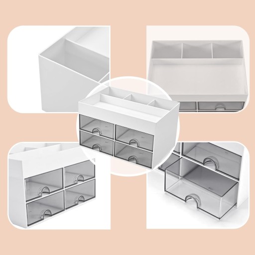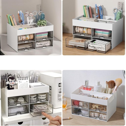DUŻA POJEMNOŚĆ DO PRZECHOWYWANIA: GŁÓWNY SCHOWEK ZAWIERA 4 PUDEŁKA I 4 PRZEZROCZYSTE SZUFLADY, MOŻNA ELASTYCZNIE PRZECHOWYWAĆ RÓŻNE ARTYKUŁY BIUROWE, PUDEŁKO DO PRZECHOWYWANIA NA BIURKO Z SZUFLADAMI, PRZEZROCZYSTE SZUFLADY TO IDEALNE MIEJSCE DO PRZECHOWYWANIA DROBNYCH PRZEDMIOTÓW, A PRZECHOWYWANE PRZEDMIOTY SĄ RÓWNIEŻ BARDZO WYGODNE. ŁATWE DO ZOBACZENIA.