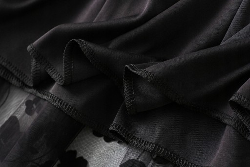 Spódnica wykorzystuje proces szycia i kolażu i jest podzielona na trzy warstwy: pierwsza warstwa flokowanej siateczki, druga warstwa przędzy siatkowej, trzecia warstwa podszewki.