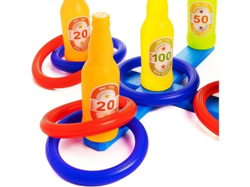 GRA ZRĘCZNOŚCIOWA, RZUCANIE OBRĘCZĄ, RINGO, KOLOROWE BUTELKI I OBRĘCZE TRAF DO CELU