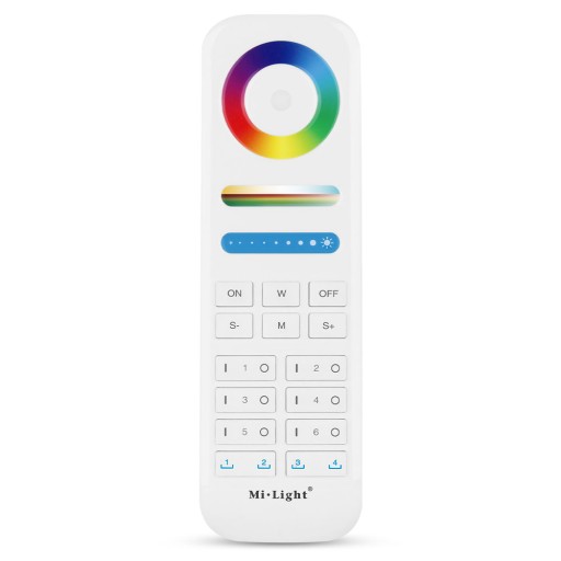 8-strefowy pilot FUT089S obsługiwany dotykowy z przyciskami. Umożliwia zmianę koloru, nasycenia koloru, temperatury barwowej oraz jasności taśm LED RGB i CCT. Pozwala na indywidualną kontrole każdej ze stref przy wykorzystaniu odbiornika radiowego. Pilot radiowy zastosować można do każdej instalacji LED, ponieważ udostępnia możliwość uzyskania dowolnego koloru RGB wraz z czynną zmianą natężenia jasności oraz temperatury barwowej CCT.