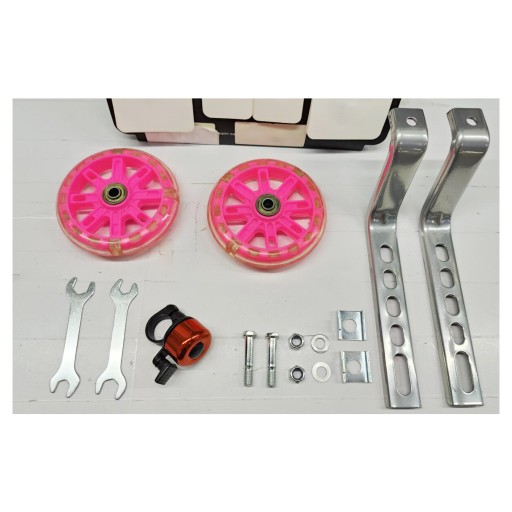 СВЕТОДИОДНЫЕ БОКОВЫЕ КОЛЕСА ДЛЯ ВЕЛОСИПЕДА 12-20 ДЮЙМОВ. ПОДДЕРЖИВАЮЩИЕ КОЛЕСА СВЕТОДИОДНЫЕ РОЗОВЫЕ.