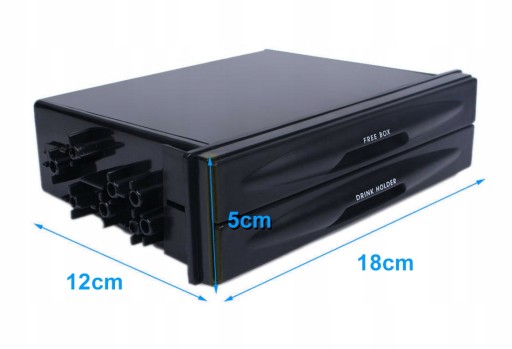 - Samochodowy uchwyt do napojów montowany w standardowym gnieździe 1 DIN.