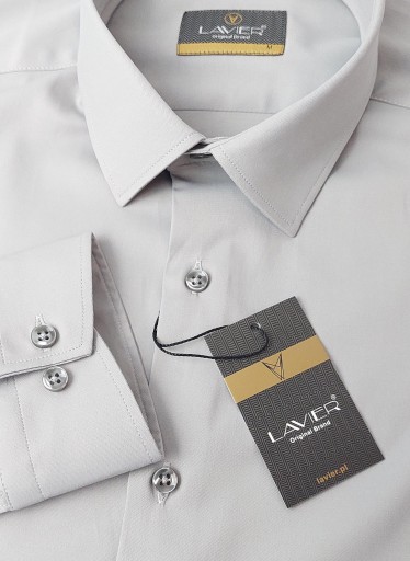 Koszula męska Szara dopasowana Lavier - SLIM FIT Bawełna Rozmiar L