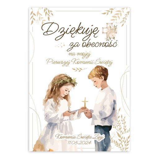 KARTKI PODZIĘKOWANIE - KOMUNIJNE - ZESTAW DZIĘKUJĘ ZA OBECNOSĆ - DZIECI - PERSONALIZOWANE