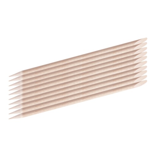 - Odsuwamy skórki drewnianym patyczkiem, paznokcie delikatnie matowimy polerką o gradacji 180, powstały pył usuwamy szczoteczką.
