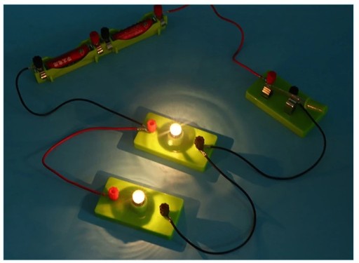 Zestaw pozwala tworzyć prosty obwód szeregowy lub równoległy.