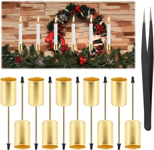 Łatwy w montażu i czyszczeniu: świecznik w stylu retro jest wyposażony w pręt o długości 7 cm, łatwy w montażu i dekorowaniu wieńców adwentowych, stołów i doniczek zgodnie z Twoimi potrzebami. Za pomocą dołączonej pęsety z łatwością wyczyścisz świece i pozostałości po świecach wewnątrz świecznika.