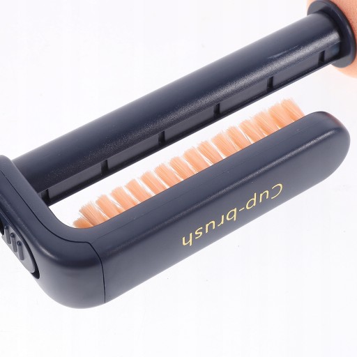 Główka szczoteczki jest delikatna i zwarta, nie uszkodzi wewnętrznej ściany kubka podczas czyszczenia.