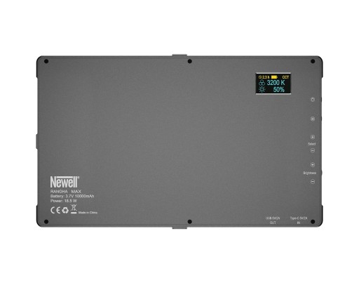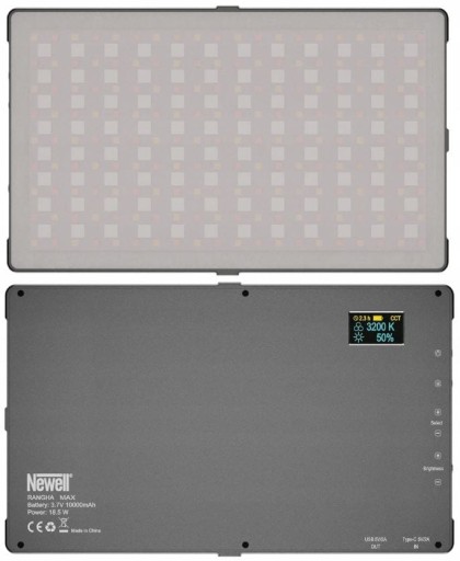 Lampa LED Newell RGB-W Rangha Max to ulepszona wersja docenionego przez fotografów i filmowców kompaktowego panelu Rangha. Niewielkie i lekkie urządzenie oferuje strumień świetlny o maksymalnej mocy 1650 lumenów, regulację temperatury barwowej w przedziale 3200 K - 5600 K, a także paletę kolorów HSI z możliwością regulacji nasycenia.