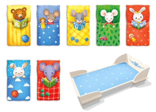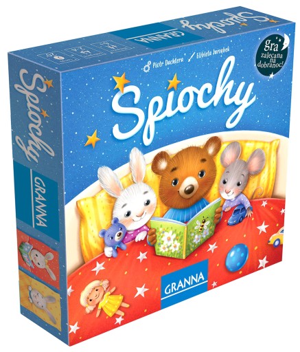 Śpiochy to pełna wdzięku gra kooperacyjna, w której zadaniem graczy będzie ułożenie do snu puchatuch zwierzaków. Podczas zabawy dzieci starają się zapamiętać jakie zabawki leżą na kolorowych kołderkach. Zasady gry: Wylosuj kilka kafelków zwierzątek i ułóż je odkryte przed graczami, Teraz dzieci na chwilę zamykają oczy, a Ty ułóż jednego ze zwierzaków na łóżeczku, Zadaniem dzieci jest powiedzieć, który śpioch właśnie poszedł spać.