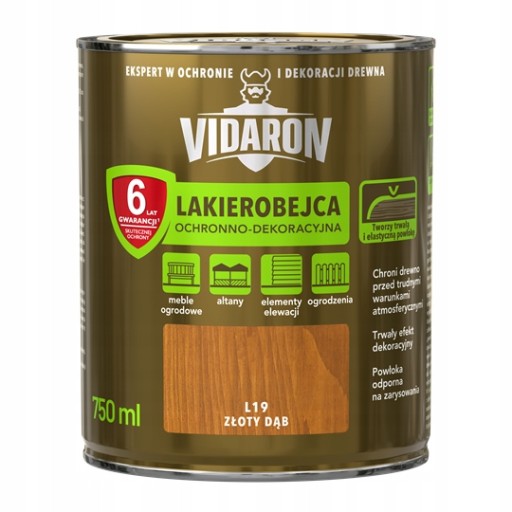 VIDARON Lakierobejca to wysokiej jakości produkt ochronno-dekoracyjny, który tworzy trwałą i elastyczną powłokę na drewnie, odporną na ścieranie. Skutecznie zabezpiecza drewno przed szkodliwym działaniem słońca (UV), wody, śniegu i mrozu, jednocześnie podkreślając naturalny rysunek słojów drewna.