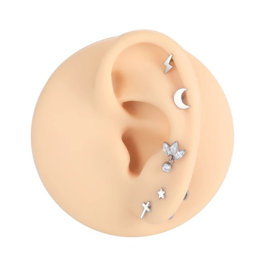 10Pcs/lot Titanium Ear Tragus Labret Ring Internal Thread Star Moon Lightning Stud Pircing Nariz Conch Cartilage Helix Earrings