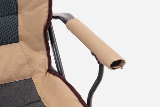 Składany, komfortowy fotel turystyczny z regulowanym, wentylowanym oparciem i uchwytem na butelkę.