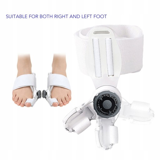 3. Dla obu stóp: ortopedyczny korektor palucha koślawego przyjął pokrętło obrotowe do regulacji i mocowania kciuka, które jest odpowiednie zarówno dla prawej, jak i lewej stopy.