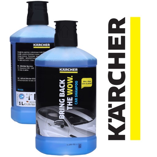 Oto nowy szampon marki Karcher, stworzony specjalnie do mycia samochodów. Nasz nowy preparat do czyszczenia pojazdów oferuje unikalną formułę 3 w 1, która skutecznie usuwa nawet najtrudniejsze zabrudzenia. Dodatkowo przyspiesza proces schnięcia, dzięki czemu Twoje auto szybciej odzyska blask. Nasz szampon jest łagodny dla czyszczonej powierzchni, zapewniając jednocześnie szybkie i efektywne czyszczenie we współpracy z urządzeniami wysokociśnieniowymi Karcher.
