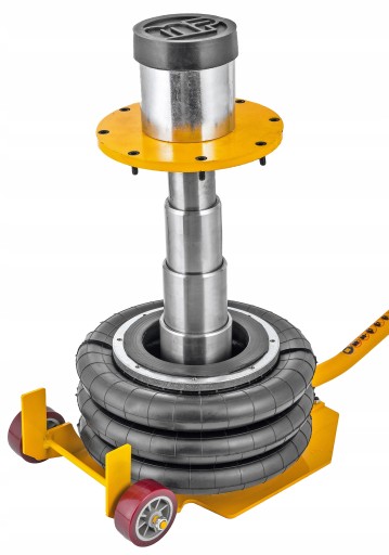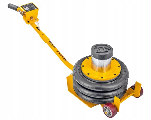 Dwa koła i zakrzywiona rączka pozwalają na łatwy i szybki transport podnośnika. Poduszkę podnośnika wykonano ze zbrojonego kauczuku.