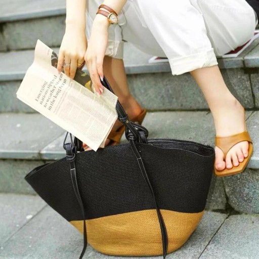 ЛЕТНЯЯ ПЛЯЖНАЯ СУМКА КОРЗИНА БОЛЬШАЯ СОЛОМНАЯ СУМКА ЧЕРНАЯ КОРИЧНЕВАЯ А4