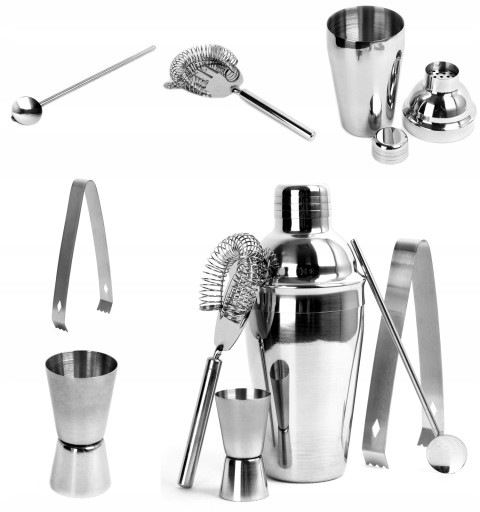 Zestaw barmański do przygotowywania kuszących koktajli i drinków - shaker o pojemności 500 ml i cztery inne niezbędne narzędzia.