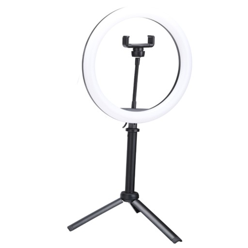 Nowoczesna lampa pierścieniowa ze światłem diodowym o zmiennej temperaturze barwowej, wykorzystywana jest przy nagrywaniu filmów na Youtube, video blogów, fotografii makijażu, fotografii macro, produktowej oraz portretowej.
