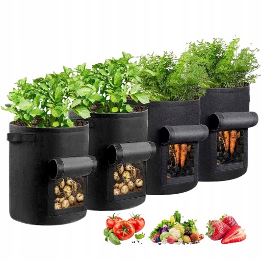 Dzięki tym4-pakowym workom do sadzenia można sadzić pomidory, ziemniaki, rzodkiewki, marchewki, cebuli, ogórki i wiele innych warzyw. Duża pojemność (23 x 28 cm), dzięki czemu można ich używać również do kwiatów roślinnych.