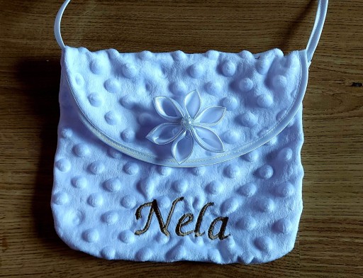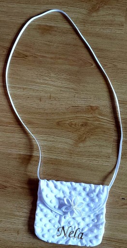Torebka stanowi świetne uzupełnienie stylizacji komunijnej, jak również jest bardzo praktyczna, pomieści np. książeczkę, różaniec, chusteczki itp.