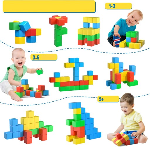 Super silny magnes pozwala dziecku bez wysiłku budować różnorodne wzory, nasze silne magnetyczne kostki dla maluchów w wieku 1-5 lat.