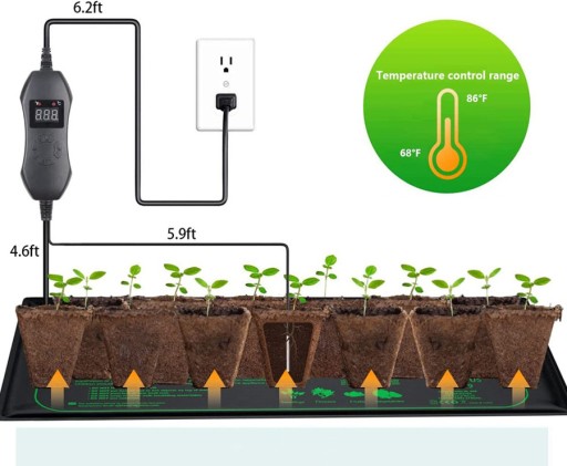 - Mata grzewcza podgrzewa glebę do temperatury około 10'F-20'F powyżej temperatury powietrza otoczenia, co zapewnia optymalne środowisko do kiełkowania i rozmnażania nasion.
