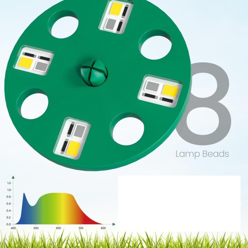 - Każda taca startowa z nasionami jest wyposażona w światło LED o pełnym spektrum działania, zawierające 8 koralików lampowych — zawierające źródła światła czerwonego, niebieskiego i białego — korzystne dla fotosyntezy na różnych etapach wzrostu, oferujące optymalne warunki oświetleniowe i wspierające sadzonki wzrost