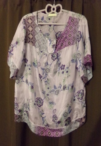 БЛУЗКА MONGUL Размер XXL С ЦВЕТАМИ 100% ШЕЛК