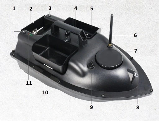 - Sterowanie łódką przebiega bez zakłóceń, częstotliwość sterowania 2,4 ghz