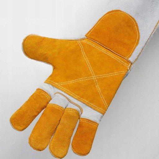 Wykonane z wysokiej jakości skóry bydlęcej, mocne i trwałe, zręczność, odporność na ścieranie i komfort, ognioodporność i odporność na ciepło