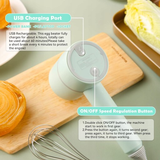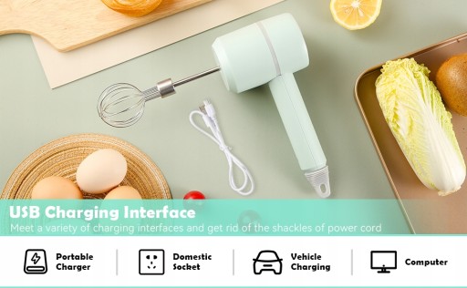 - 【Bezprzewodowa konstrukcja i ręczny】Dzięki ładowaniu przez USB i bezprzewodowej konstrukcji ten przenośny elektryczny mikser ręczny zapewnia dużą wygodę użytkowania w dowolnym miejscu i czasie bez bałaganu kabli. Zarówno na stole w salonie, biurku, jak i podczas wycieczki w plener. Lekki mikser ręczny z pewnością pomoże Ci w gotowaniu.