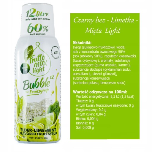 Syrop FruttaMax o smaku LIMONKA MIĘTA BEZ LIGHT - STEVIA 500 ml 50% owoców !