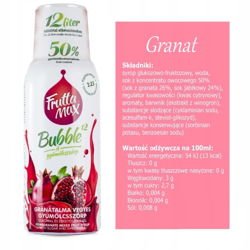 Syrop do saturatora Soda o smaku GRANAT 500 ml 60% owoców !