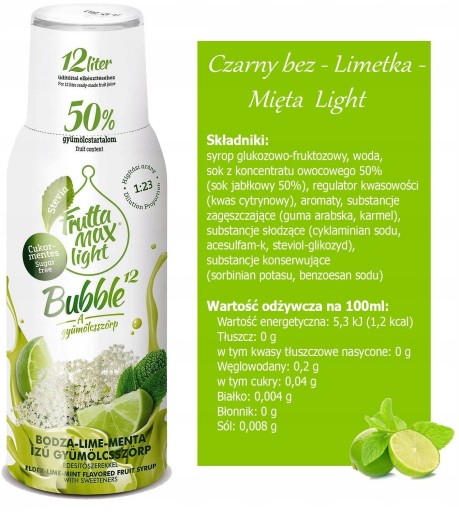 Syrop do saturatora Soda o smaku LIMONKA MIĘTA BEZ LIGHT - STEVIA 500 ml 60% owoców !