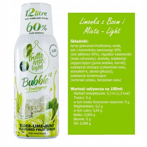 Syrop FruttaMax o smaku LIMONKA MIĘTA BEZ LIGHT - STEVIA 500 ml 50% owoców !