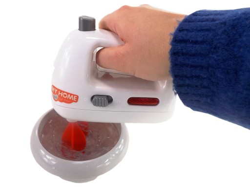 Z robota kuchennego wydobywa się charakterystyczny dźwięk mieszania i dodatkowo świeci się lampka, które urealistycznią i uatrakcyjnią zabawę. W zestawie znajduje się także miska, dzięki której można udawać ubijanie kremów lub bitej śmietany. Mikser można także zdjąć z ramienia i miksować trzymając go w ręce. Kształt i wymiary zabawki dostosowane są do małych dziecięcych rączek, dzięki czemu zabawa będzie wygodna i bezpieczna.