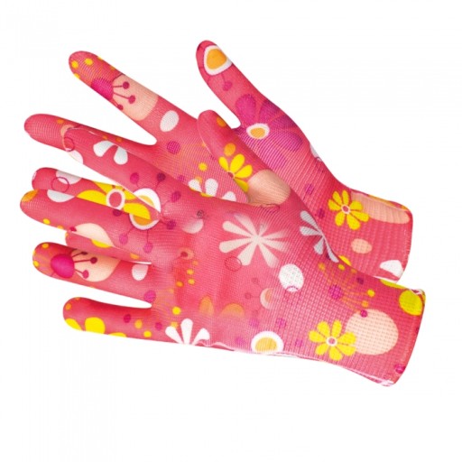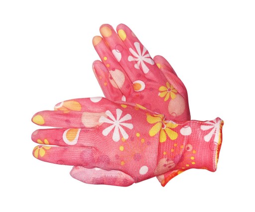 Rękawiczki robocze damskie, dziecięce, świetnie sprawdzą się przy pracach manualnych, technicznych oraz w ogrodzie. Modny wzór kwiatowy wyróżnia ten model na tle innych. Odpowiednia grubość rękawic oraz warstwa poliuretanu sprawia że są mocne i wytrzymałe.